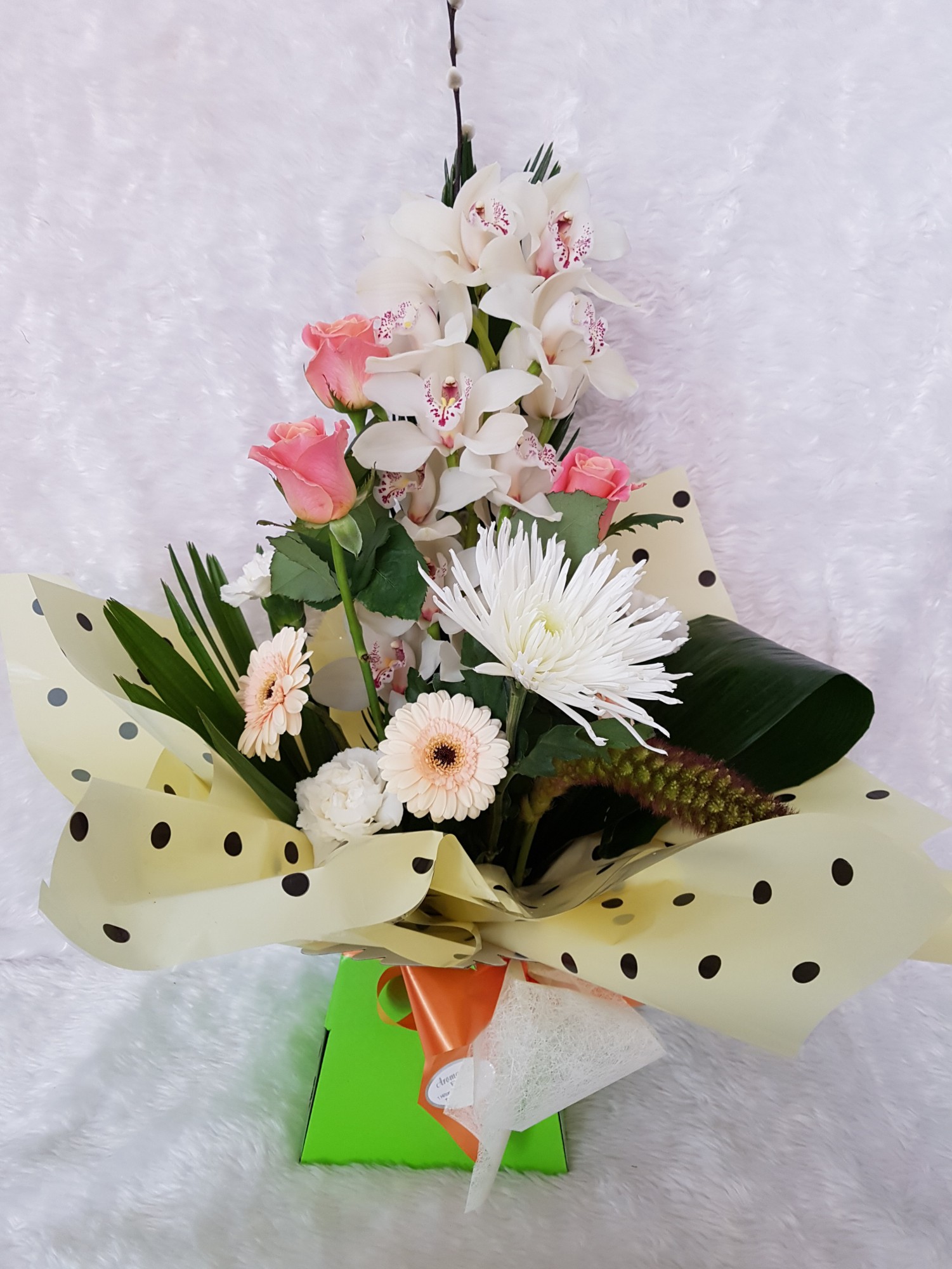Beautiful Oriental Lillies simply arranged with Bear Grass to create a luxurious and contemporary design.