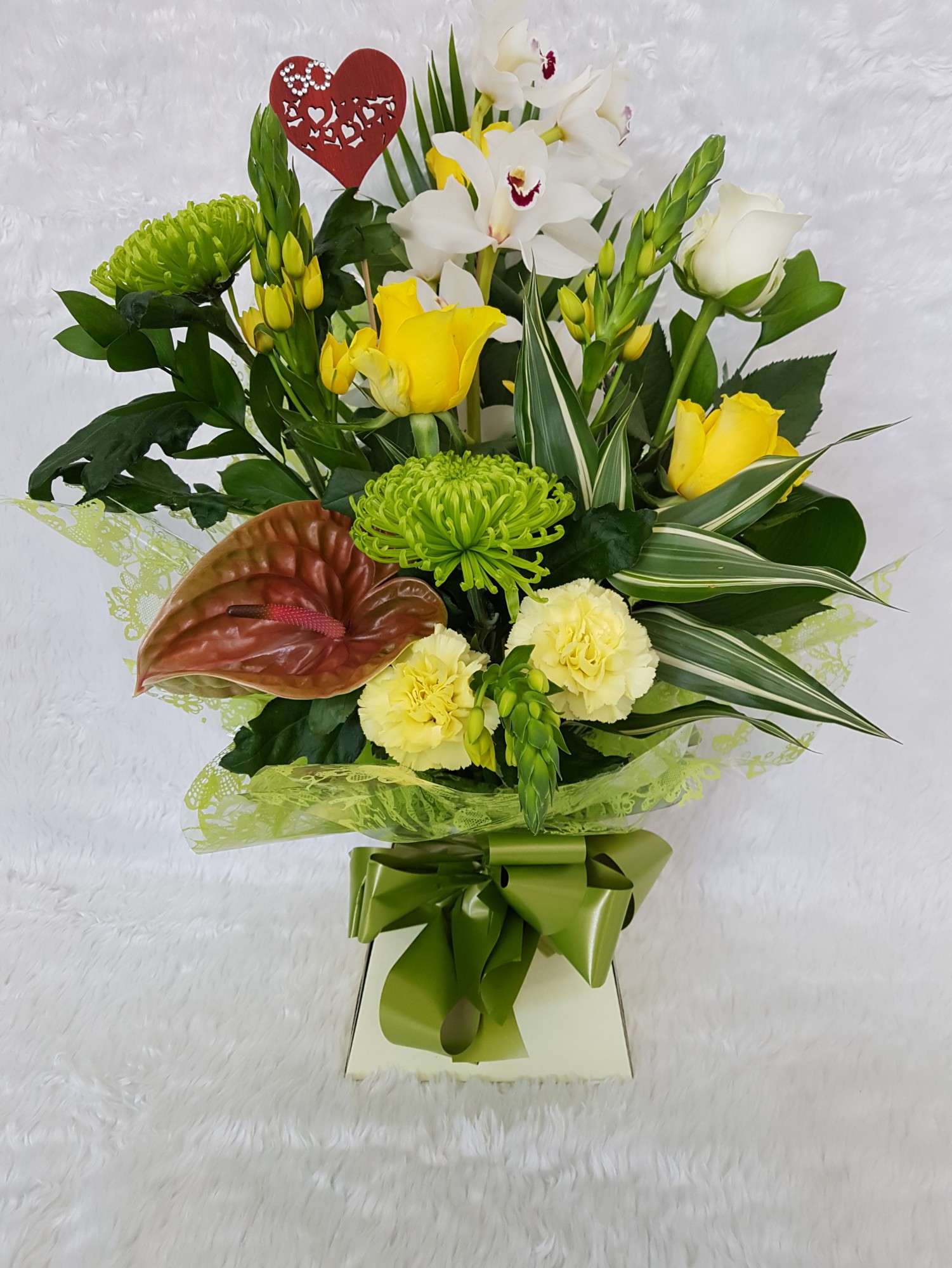A stunning combination of mixed Cymbidium Orchids. Classy and very elegant.